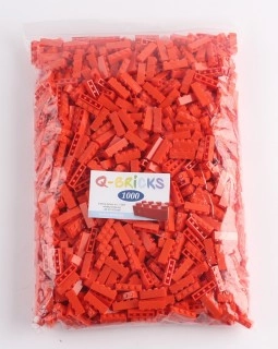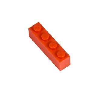 Stavební kostka Q-bricks 4x1 tmavě oranžové barvy. Rozměry 32 x 8 mm. Kompatibilní s kostkami klasického Lega.