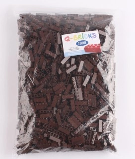 Stavební kostka Q-bricks 4x1 tmavě hnědé barvy. Rozměry 32 x 8 mm. Kompatibilní s kostkami klasického Lega.