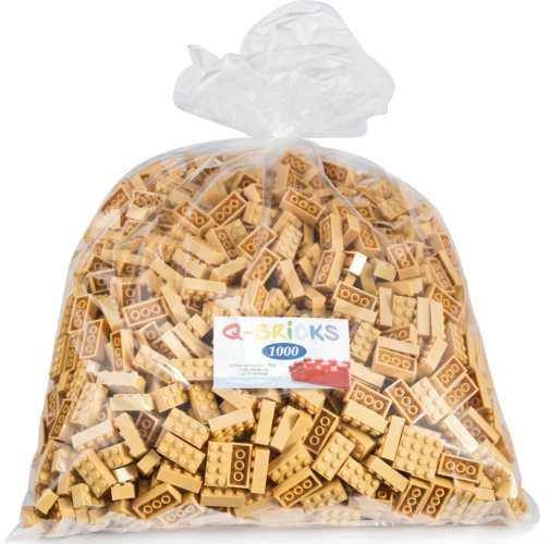 Stavební kostka Q-bricks 4x2 béžové barvy (písková). Rozměry 32x16 mm. Kompatibilní s kostkami legendární dánské stavebnice. Béžové kostky nabízíme v dalších velikostech i odstínech - Béžové kostky.