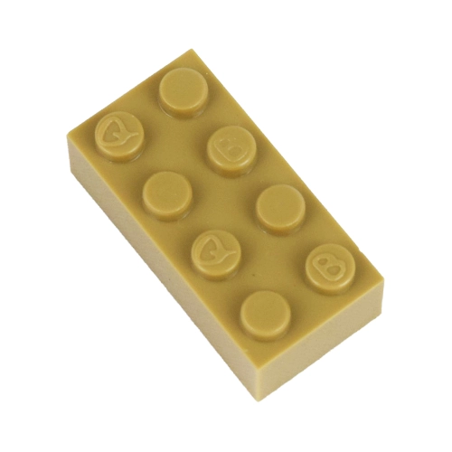Stavební kostka Q-bricks 4x2 tmavě béžové barvy. Rozměry 32x16 mm. Kompatibilní také s kostkami legendární dánské stavebnice.