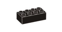 Stavební kostka Q-bricks 4x2 černé barvy. Rozměry 32x16 mm. Kompatibilní s kostkami legendární dánské stavebnice.