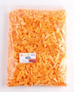 Stavební kostka Q-bricks 4x2 melounové (žluto-oranžové) barvy. Rozměry 32x16 mm.