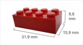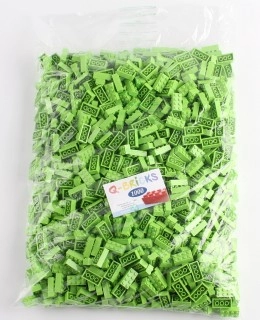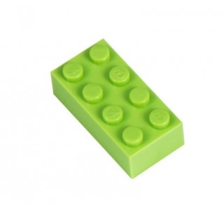 Stavební kostka Q-bricks 4x2 světle zelené barvy. Rozměry 32x16 mm. Kompatibilní s kostkami klasického Lega.