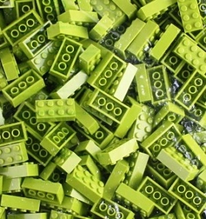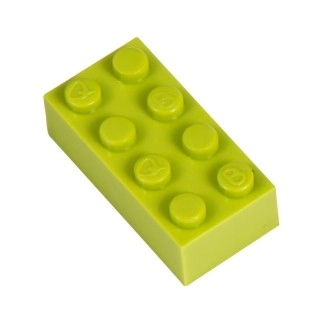 Stavební kostka Q-bricks 4x2 trávově zelené barvy. Rozměry 32x16 mm. Kompatibilní s kostkami legendární dánské stavebnice.