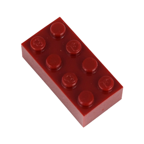 Stavební kostka Q-bricks 4x2 vínově červené barvy. Rozměry 32 x 16 mm. Kompatibilní s kostkami legendární dánské stavebnice. Červené kostky nabízíme i v dalších velikostech a odstínech - Červené kostky Q-Bricks.