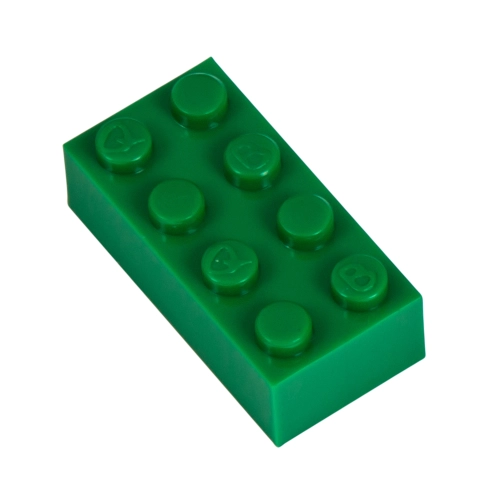 Stavební kostka Q-bricks 4x2 zelené barvy. Rozměry 32x16 mm. Kompatibilní s kostkami legendární dánské stavebnice. Zelené kostky nabízíme i v dalších velikostech a odstínech - Zelené kostky Q-Bricks.