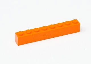 Stavební kostka Q-bricks 8x1 jasně oranžové barvy. Rozměry 64 x 8 mm. Kompatibilní s kostkami legendární dánské stavebnice.