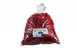 Stavební kostka Q-bricks 8x2 červené barvy. Rozměry 64 x 16 mm. Kompatibilní s kostkami legendární dánské stavebnice.