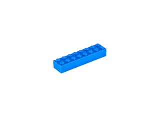 Stavební kostka Q-bricks 8x2 modré barvy. Rozměry 64 x 16 mm. Kompatibilní s kostkami legendární dánské stavebnice.
