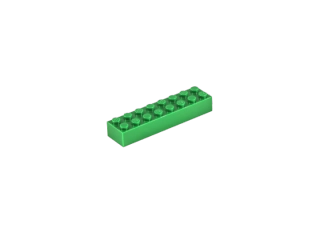 Stavební kostka Q-bricks 8x2 zelené barvy. Rozměry 64 x 16 mm. Kompatibilní s kostkami legendární dánské stavebnice.