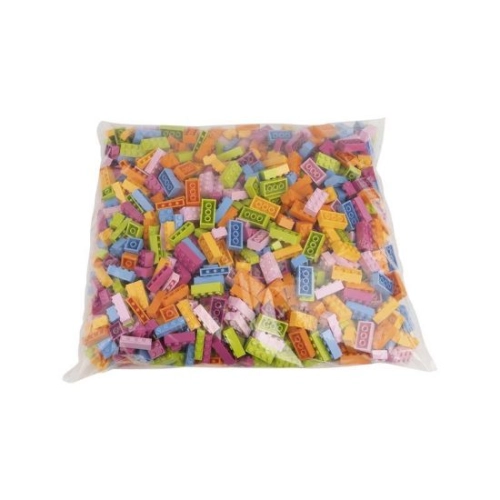 Velká sada 1000 ks kostek v 7 velikostech - 4x2, 2x2, 4x1, 3x2, 12x1, 8x1 a 8x2 v různých barvách pro malé stavitelky: světle růžová, melounově žlutá, trávově zelená, světle modrá, světle oranžová a purpurová. Tato sada neobsahuje žádné malinké kostky, jako jsou 1×1 a 1×2 a umožňuje bezpečnou hru. Speciální mix kostek pro školky, školy či herny. Navrženo v Itálii, vyrobeno ve Slovinsku.
