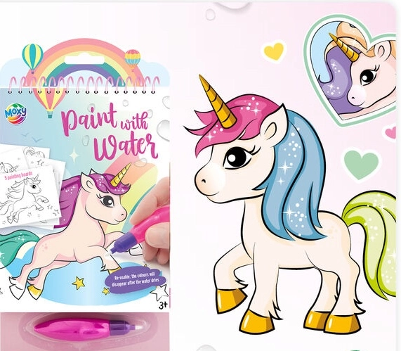 Malování vodou, magické malování, vodní omalovánky nebo také kouzelné malování je zábavná a kreativní aktivita, která je ideální pro malé děti. Místo klasických barev a štětců používáte štětec, který naplníte vodou. Štětcem malujete po obrázku se speciálním bílým povrchem. Povrch se po kontaktu s čistou vodou zbarví a objeví se krásný barevný obrázek. Až obrázek zaschne, můžete malovat znovu a stále dokola.