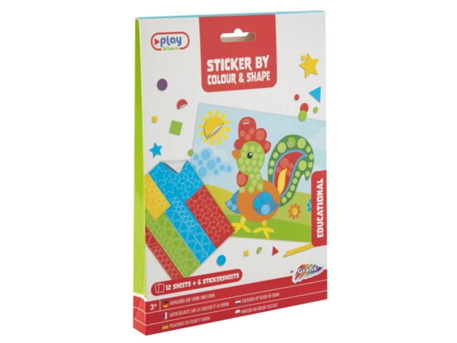 Balení obsahuje: 12 barevných obrázků, 6 listů se samolepkami různých barev a tvarů.