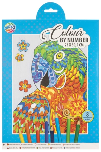 Obrázek je rozdělen na jednotlivá číselná políčka, pastelky mají také čísla a jen vybarvujete políčka podle čísel. Sada obsahuje 8 barevných pastelek, obrázek rozdělaný na dílky, předlohu a ořezávátko.