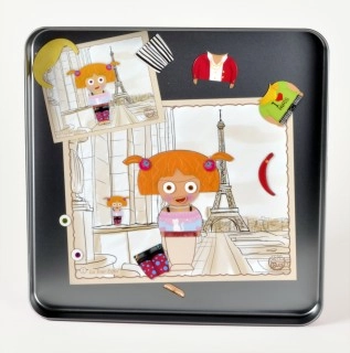 Zábavná magnetická skládačka pro „malé slečny“, které rády mění šaty a účesy jako Lilly, která navštívila město módy Paříž. Baleno v praktickém kovovém obalu, který obsahuje: * 64 ks barevných magnetek * 8 oboustranných barevných karet (16 modelů Lilly v Paříži) * 8 oboustranných barevných obrázkových předloh