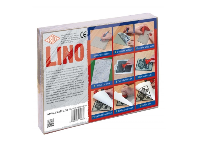 Gumové lino je určeno k linorytové grafice. Do lina se ryje speciálními rydly. Díky jeho gumové konzistenci se s ním pracuje velice snadně. V balení 10 ks. Vyrobeno v Anglii.