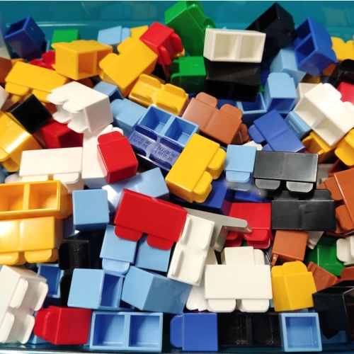 Stavebnice je uložená v plastovém boxu s víkem a zaklapávacími chlopněmi.