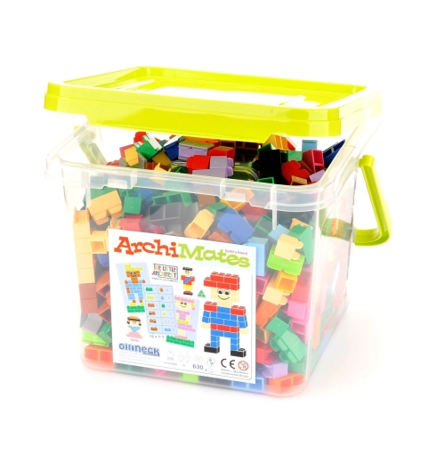 Stavebnice obsahuje 630 dílků v různých barvách (rozměr dílku 1-4 cm) a 12 oboustranných plastových kartiček s předlohami postav a je uložená v praktickém uzaviratelném boxu.