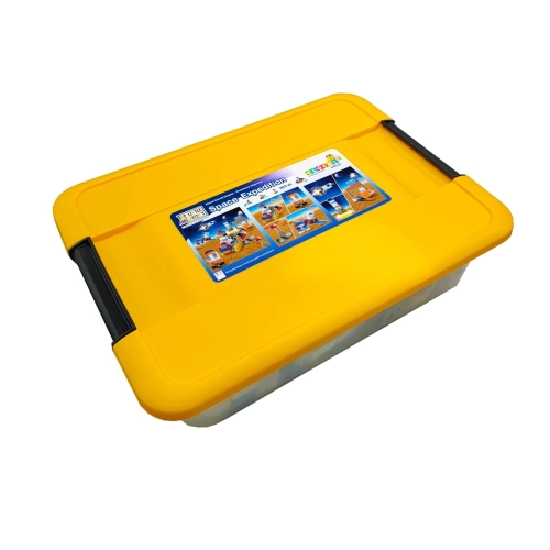 Stavebnice je uložená v plastovém boxu s víkem a zaklapávacími chlopněmi, box obsahuje 383 dílků a mnoho návodů na stavění.