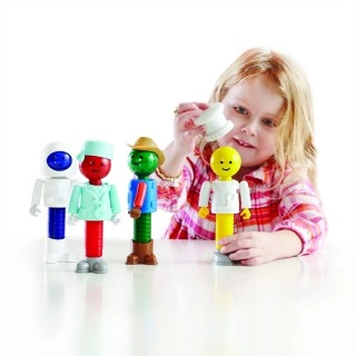 Díky tomu je možné prvky různě kombinovat a děti si mohou postavit svojí originální postavičku 18 cm vysokou.