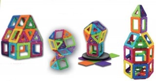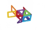 Magnetická stavebnice Magformers 30 obsahuje celkem 30 dílků (18 čtverců a 12 trojúhelníků) ve 4 dvojbarevných kombinacích - žlutá-růžová, oranžová-červená, světle zelená-fialová a světle modrá-tmavě modrá. Z těchto dílků sestavíte rozmanitá zvířata, květiny, altánky, zámky i jednoduchá geometrická tělesa. Koukněte na video.