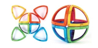 Dílky stavebnice Magformers ve tvaru 1/8 koule. Na sestavení celé koule je potřeba 8 dílků. Celou sadu 12 dílků v 11 barvách Koule Magformers lze koupit zde: Magformers Koule (dílky) 12 ks.