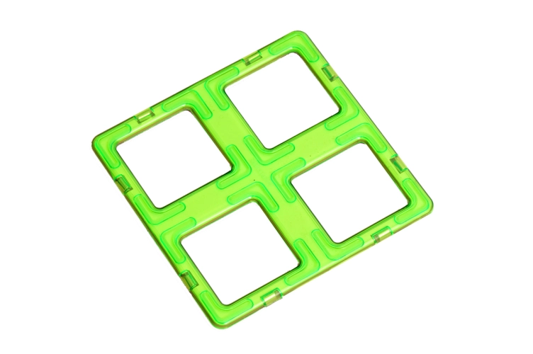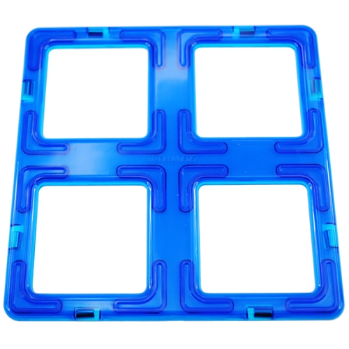 Balení 12 ks velkých dílků Magformers ve tvaru čtverce se čtyřmi čtvercovými okénky. Čtverec Mřížka je stejně velký jako tzv. Superčtverec Magformers (13 x 13 cm). Do jednotlivých okének lze vkládat Otočný panel nebo panely ABC.