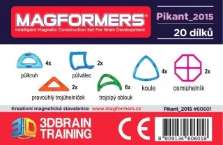 Magformers Pikant 2015 obsahuje nové magnetické dílky namíchané v doporučených poměrech pro maximální konstrukční využití. Sada obsahuje celkem 20 dílků: 2 velké osmiúhelníky, 2 pravoúhlé trojúhelníčky, 4 koule (dílky), 2 půlválce, 4 půlkruhy, 6 trojcípých obloučků
