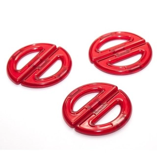 Balíček 6 ks Magformers půlkruhů. Magformers Půlkruh je nový dílek se 2 magnety vzniklý rozpůlením kruhu o jednotkovém průměru. Lze jej snadno kombinovat i s ostatními dílky. Jeho oblou stranu lze spojit s půlválcem (tvoří mu základnu) či trojcípým obloukem, viz vyobrazené tvarové kombinace. Skladem jsou nyní jednobarevné balíčky po 6 ks (tmavě červené), tento dílek lze nakupovat i po 1 ks.