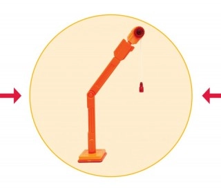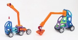 Jeřábové rameno Magformers s oddělitelnou magnetickou kladkou na lanku. Doposud bylo rameno jeřábu k mání jen jako součást stavebnic Power Construction a obřích dárkových balení. Ráčna kladky je vybavena vnitřním ozubeným kolečkem a lze ji tedy aretovat v mnoha různých polohách odvinutí. Stejně tak lze fixovat i úhel zdvihu ramene, které se navíc může plynule otáčet o 360 stupňů kolem základní desky.