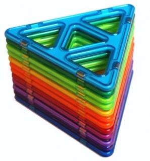 Sada Magformers SUPER trojúhelníky obsahuje 12 velkých složených trojúhelníků. SUPER trojúhelníky jsou 4x větší než klasické trojúhelníky Magformers. Jsou vyztužené úhlopříčnými spojnicemi a obsahují více neodymových magnetů. Super trojúhelníky lze koupit i jednotlivě!