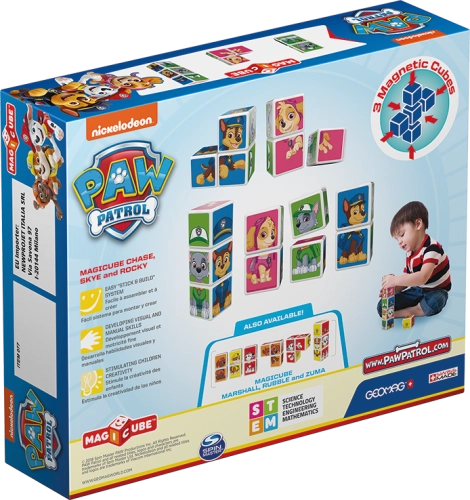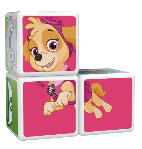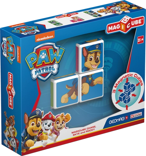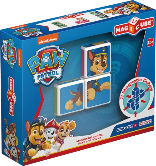 Magnetcká stavebnice pro nejmenší Magicube Tlapková patrola Chase nabízí 3 magnetické kostičky s vlisovanými obrázky - žádné odlupující se samolepky! Vhodné pro děti od 2,5 let.
