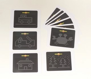 Obsah balení: tabulka s perem, 10 ks papírových karet s předlohami.