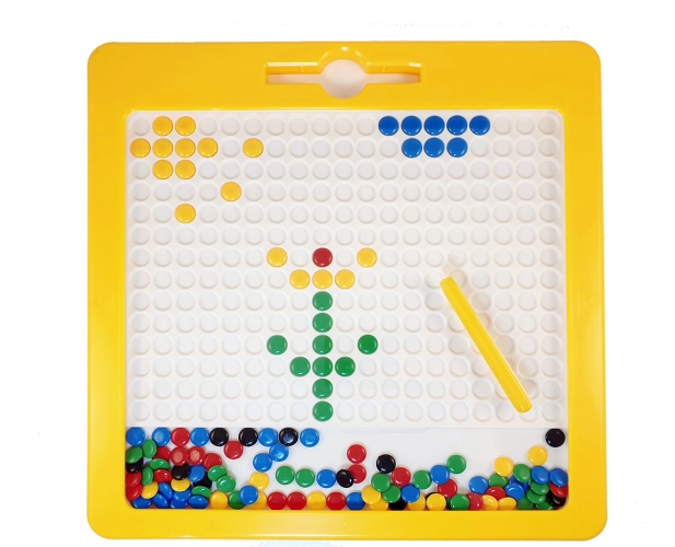 Magnetická tabulka Magpad Big Lentilky je vhodná pro děti předškolního i školního věku, která rozvíjí jemnou motoriku, učí barvocitu a zlepšuje koordinaci oko-ruka za pomocí barevných čoček.