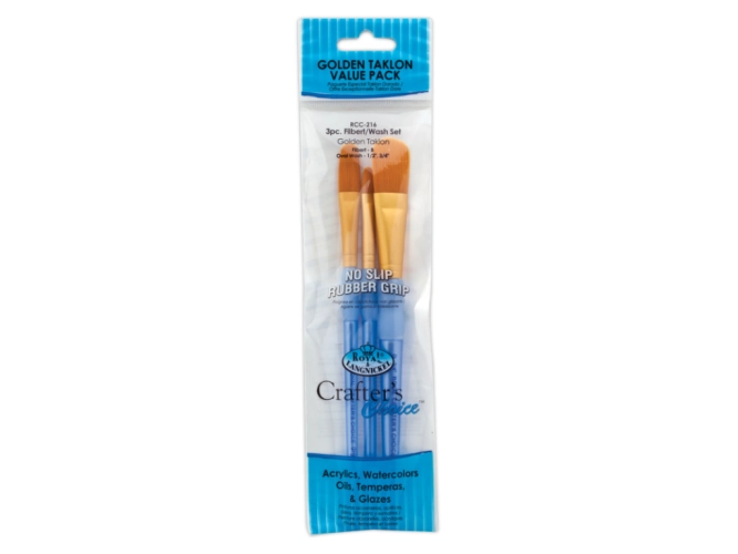 Sada obsahuje : 3 oválné štětce - 1x zakulacený č.8, 2x oválný č.1/2(13mm), 3/4(19 mm)