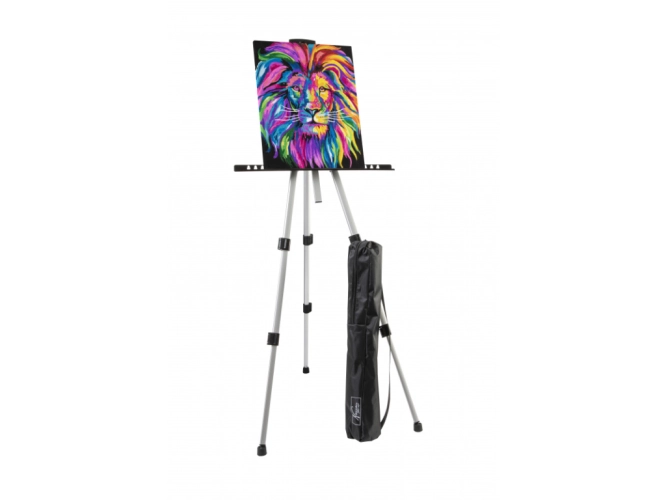 Nastavitelný malířský stojan s hliníkovou konstrukcí.