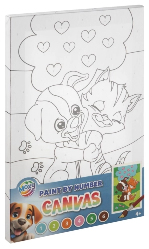 Malování na plátno, barvy a štětec - pes a kočka 30x20 cm