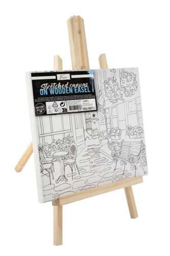 Balení obsahuje: plátno 30 x 22,5 cm s předtištěným motivem, dřevěný stojan