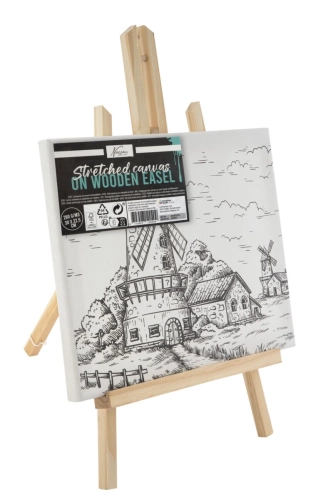 Balení obsahuje: plátno 30 x 22,5 cm s předtištěným motivem, dřevěný stojan