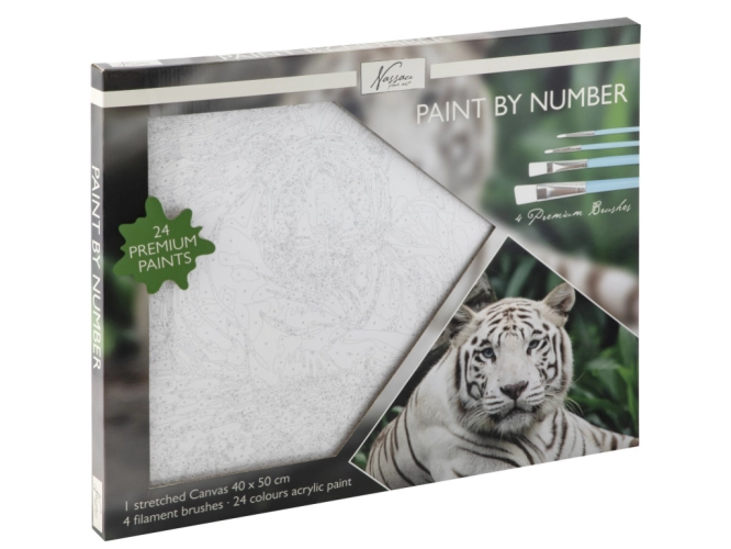 BALENÍ OBSAHUJE: Plátno 40 x 50 cm zabalené ve strečové fólii, 4 x malířské štětce, 24 akrylových barev