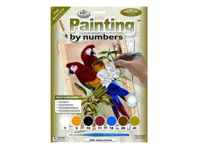Obrázek je rozdělen na jednotlivá políčka s čísly, barvy mají také čísla a jen vybarvujete políčka podle čísel. V balení naleznete obrázek s povrchem jako plátno zalisovaný v pevném kartonu, štětec a akrylové barvy, které dobře a rychle schnou, dají se ředit a omývat vodou. Vhodné od 8 let.