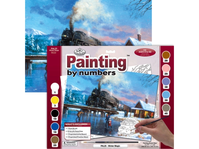 Obrázek je rozdělen na jednotlivá číselná políčka, barvy mají také čísla a jen vybarvujete políčka podle čísel. V balení naleznete obrázek s povrchem jako plátno zalisovaný v pevném kartonu, štetec a akrylové barvy, které dobře a rychle schnou, dají se ředit a omývat vodou. Vhodné od 8 let.