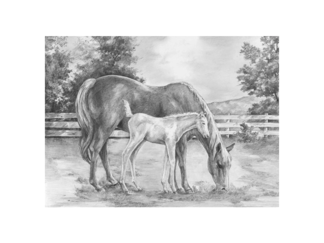 Malování SKICOVACÍMI TUŽKAMI - Kůň a hříbě