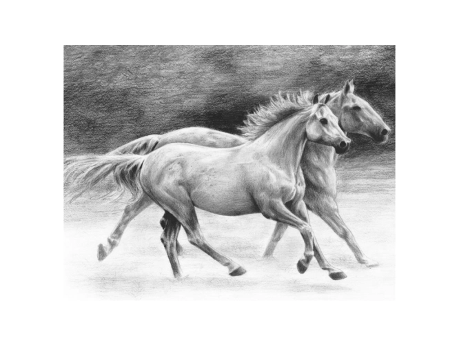 Malování SKICOVACÍMI TUŽKAMI-Běžící koně