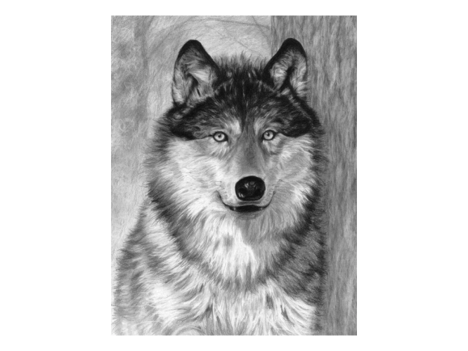 Malování SKICOVACÍMI TUŽKAMI-Hlava vlka