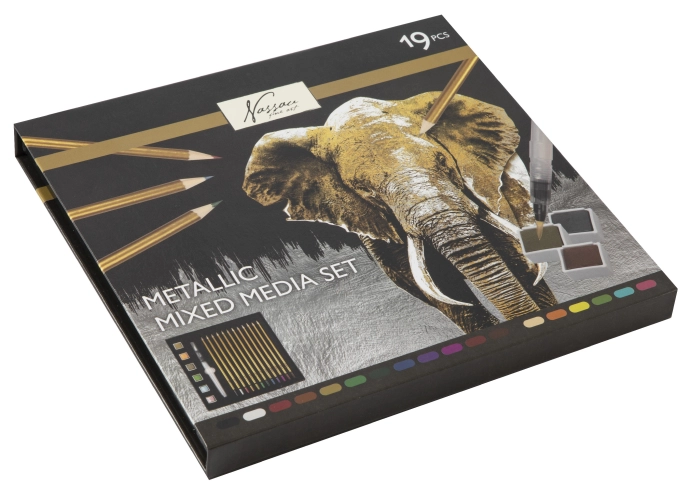 Malířská sada obsahuje: 12 metalických pastelek, 1 vodní štětec, 6 akvarelových barev.