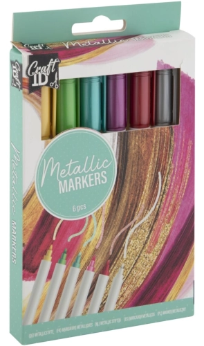 Obsahuje: 6 ks barevných metalických štětcových popisovačů.
