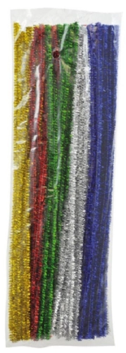 Balení obsahuje 90 ks třpytivých drátů - červená, zelená, zlatá, stříbrná, modrá, 30 cm o Ø 6 mm.