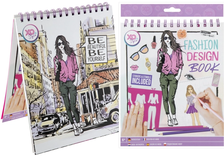 Módní kniha – Módní design je kreativní sada pro děti, které milují módu a chtějí si navrhovat vlastní outfity. Tato stylová módní skicovací kniha obsahuje 36 listů na kreslení, 5 šablon různých typů oblečení a samolepky pro vytváření originálních módních návrhů.