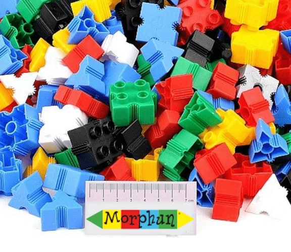 Doplňková sada kostek Morphun Junior 100 ks. Balení obsahuje 100 barevných kostek trojúhelníkové a čtvercové tvaru a je skvělým doplňkem každé stavebnice Morhun. Sada je vhodná pro všechny typy stavebnic Morphun. Je uložena v plastovém sáčku.